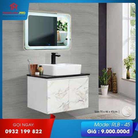 Bộ tủ chậu RLB-45 có thiết kế hiện đại, thanh lịch với tông màu M2 làm chủ đạo. Mẫu tủ chậu này cũng gồm 3 bộ phận chính là gương soi, tủ đựng đồ, chậu rửa mặt. Bên ngoài chậu rửa mặt được viền lên cao giúp nước không bị bắn ra ngoài trong quá trình sử dụng. Tủ đựng đồ có diện tích rộng rãi có thể đựng nhiều đồ dùng tiện lợi, gọn hàng.