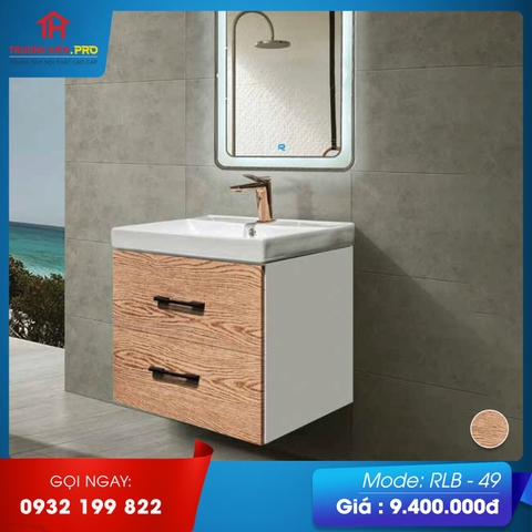 Bộ tủ chậu RLB-49 có thiết kế hiện đại, thanh lịch với tông màu M11 làm chủ đạo. Mẫu tủ chậu này cũng gồm 3 bộ phận chính là gương soi, tủ đựng đồ, chậu rửa mặt. Bên ngoài chậu rửa mặt được viền lên cao giúp nước không bị bắn ra ngoài trong quá trình sử dụng. Tủ đựng đồ có diện tích rộng rãi có thể đựng nhiều đồ dùng tiện lợi, gọn hàng.