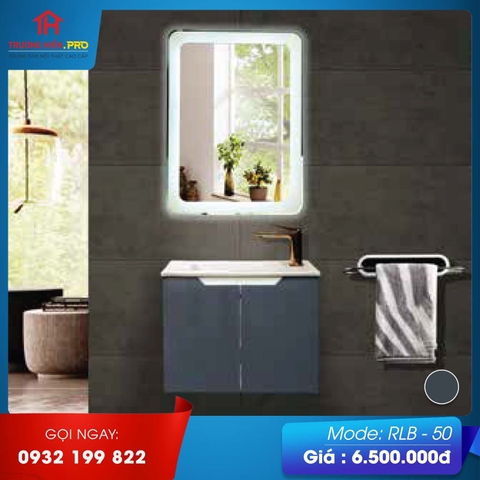 Bộ tủ chậu RLB-50 có thiết kế hiện đại, thanh lịch với tông màu xám đậm làm chủ đạo. Mẫu tủ chậu này cũng gồm 3 bộ phận chính là gương soi, tủ đựng đồ, chậu rửa mặt. Bên ngoài chậu rửa mặt được viền lên cao giúp nước không bị bắn ra ngoài trong quá trình sử dụng. Tủ đựng đồ có diện tích rộng rãi có thể đựng nhiều đồ dùng tiện lợi, gọn hàng.