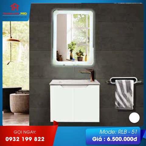 Bộ tủ chậu RLB-51 có thiết kế hiện đại, thanh lịch với tông màu trắng làm chủ đạo. Mẫu tủ chậu này cũng gồm 3 bộ phận chính là gương soi, tủ đựng đồ, chậu rửa mặt. Bên ngoài chậu rửa mặt được viền lên cao giúp nước không bị bắn ra ngoài trong quá trình sử dụng. Tủ đựng đồ có diện tích rộng rãi có thể đựng nhiều đồ dùng tiện lợi, gọn hàng.