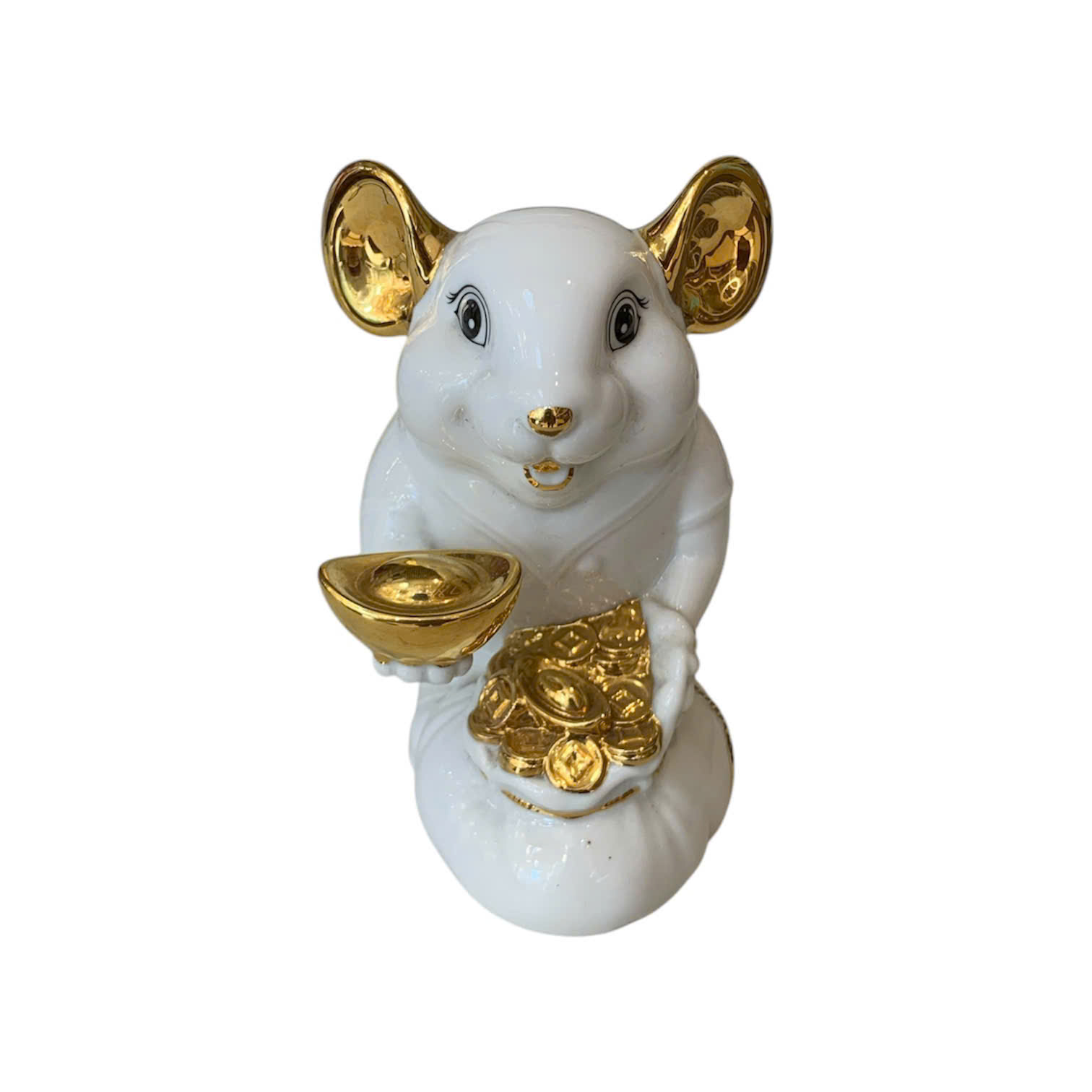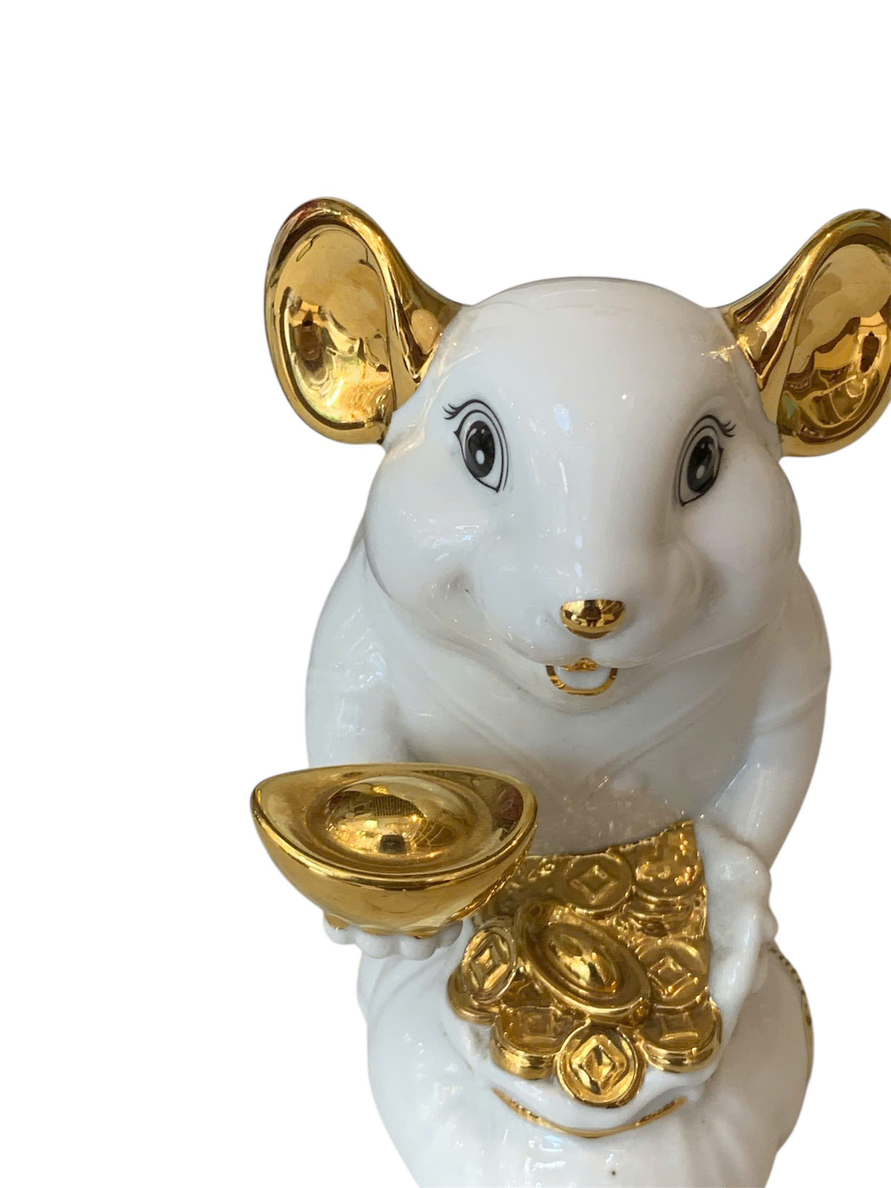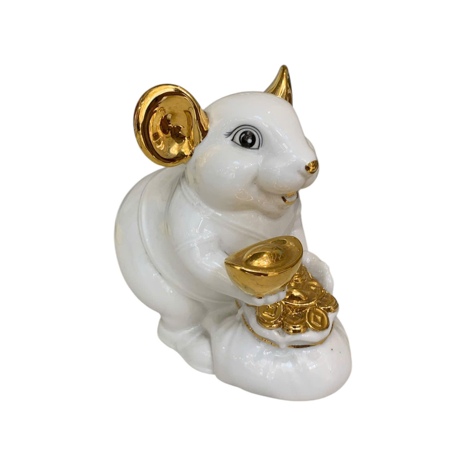- Tên sản phẩm: Tượng Chuột Phú màu trắng trang trí vàng