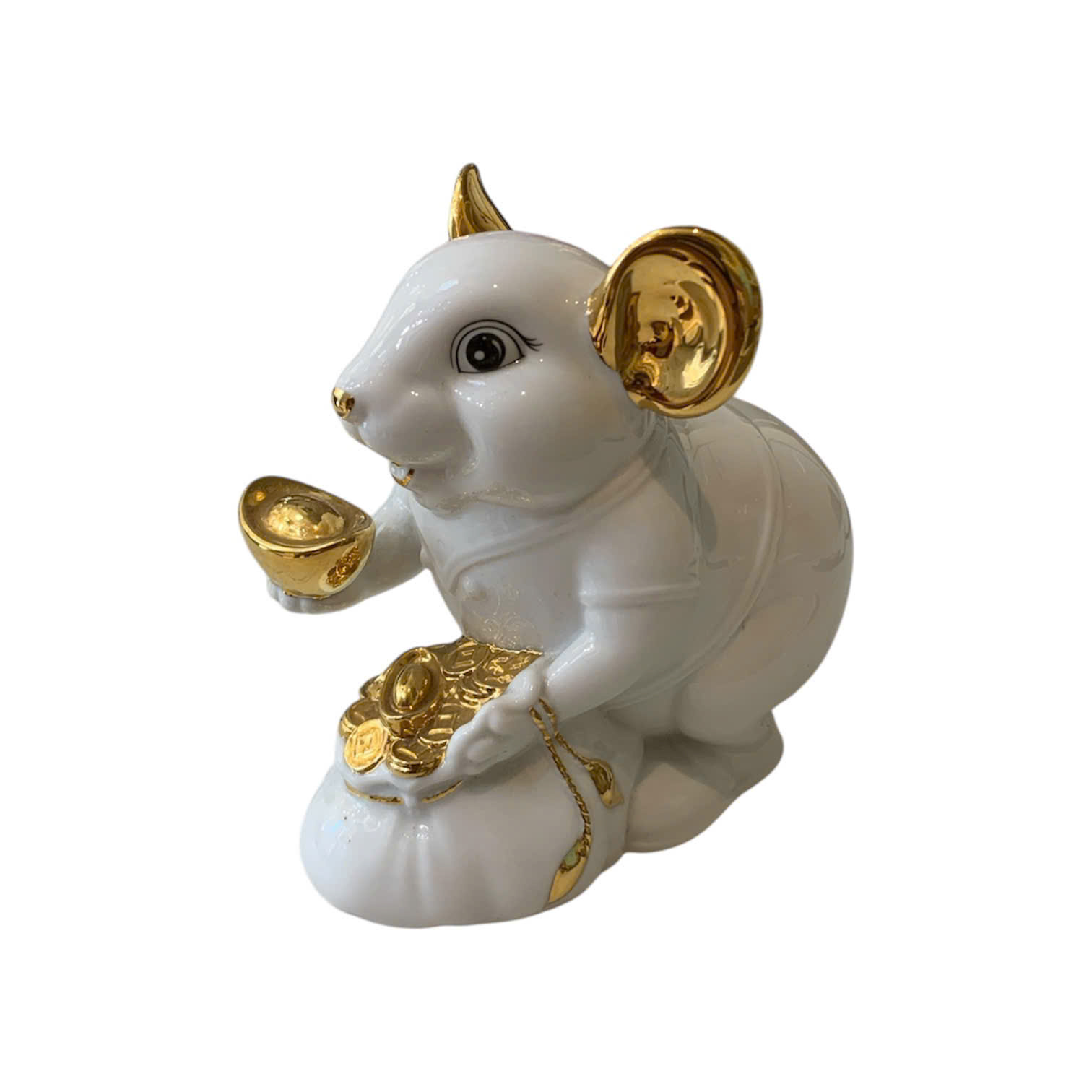 Chuột Phú – Màu Trắng – Trang trí vàng 24K là phiên bản đặc biệt của tượng chuột Phú Quý chế tác đặc biệt của Minh Long mừng năm mới.